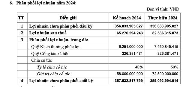 Nếu đề xuất này được thông qua, doanh nghiệp dự kiến chi khoảng 72,5 tỷ đồng để trả cổ tức.