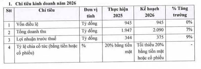 Năm 2026, Bidiphar đặt kế hoạch doanh thu hơn 2.100 tỷ đồng và lợi nhuận trước thuế 375 tỷ đồng, tăng lần lượt 7% và 9% so với năm trước. Doanh nghiệp cũng dự kiến duy trì mức cổ tức tối thiểu 20% nhằm đảm bảo lợi ích cổ đông.