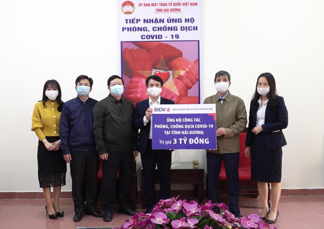 Theo đó, sáng 01/02/2021, BIDV nhanh chóng chuyển 03 tỷ đồng đến Quỹ Phòng, chống dịch COVID-19 của Uỷ ban MTTQ tỉnh Hải Dương. Tiếp sau đó, BIDV cũng đã trao 01 tỷ đồng đến Phòng, chống dịch COVID-19 của Uỷ ban MTTQ tỉnh Quảng Ninh.