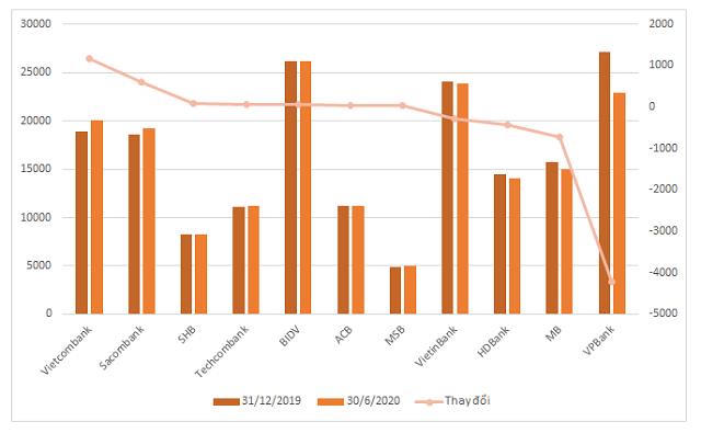 Sacombank cũng tinh giản biên chế, tái cấu trúc bộ máy, giảm gần 600 nhân viên trong 6 tháng, còn gần 18.640 người. PG Bank cũng cho biết sẽ không tuyển dụng thêm nhân sự năm 2020, chỉ điều chuyển nhân sự nội bộ và tuyển dụng bổ sung nhân sự nghỉ việc.