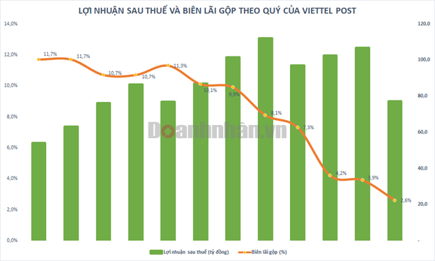 Biên lợi nhuận gộp của Viettel Post giảm 7 quý liên tiếp
