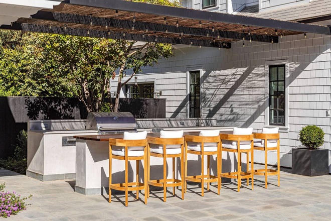 Bên cạnh bể bơi là bể sục, khu spa thư giãn và bếp nướng BBQ ngoài trời.