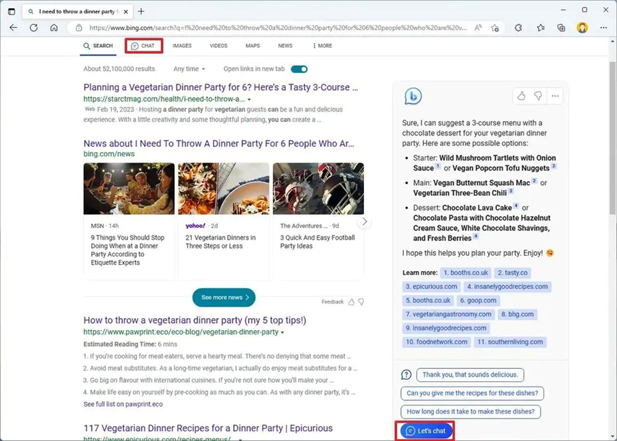 - Sau đó, bạn có thể nhấp vào nút “Let’s chat” hoặc tùy chọn “Chat” bên dưới tìm kiếm để truy cập chatbot.