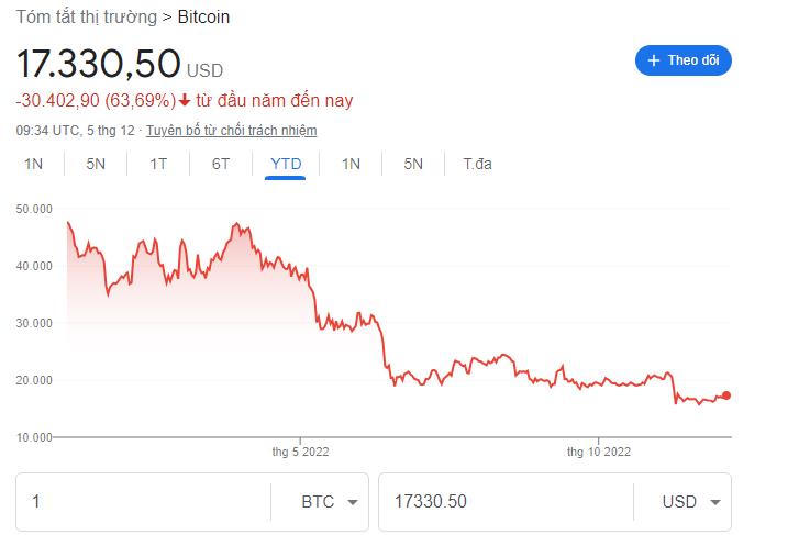 Mức giá thấp nhất của bitcoin trong năm nay là 15.480 USD trong khi thị trường tiền điện tử nói chung mất hơn 1.300 tỷ USD giá trị.