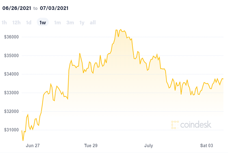 Tuy nhiên, trong ba ngày đầu tháng Bảy, Bitcoin vẫn giao dịch với mức giá giảm nhẹ, trung bình khoảng 33.000 USD, so với mốc cao trên 40.000 USD hồi tháng Sáu. Nếu giá Bitcoin tiếp tục dao động ở phía dưới đường màu đỏ như hiện tại, đồng tiền mã hóa này khó lòng đạt lại mốc cao nhất hồi tháng Tư.