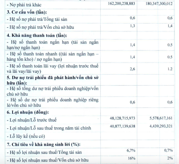Các chỉ tiêu sinh lời cũng 'sụt giảm' mạnh. Cụ thể, hệ số lợi nhuận sau thuế/vốn chủ sở hữu (ROE) giảm từ 16% xuống chỉ còn 2%; hệ số lợi nhuận sau thuế/tổng tài sản (ROA) cũng giảm từ mức 6,7% của kỳ trước xuống còn 0,7%.