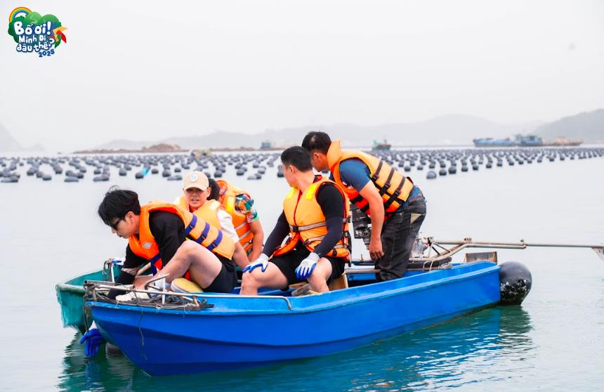 Tại bãi nuôi hàu, các bố lần đầu trải nghiệm công việc của ngư dân – vất vả và đầy kỹ thuật. Sau đó, các bố cũng có cơ hội thưởng thức hàu ngay tại chỗ. Bố Phan Đinh Tùng hào hứng chia sẻ: “Đây là lần đầu tiên Tùng được tự tay kéo hàu, cắt dây, tách hàu và thưởng thức hàu tươi tại chỗ. Dù còn mặn nhưng vị béo, vị tươi thì không đâu sánh bằng”. Những trải nghiệm giản dị nhưng chân thực ấy khiến các bố thêm thấu hiểu cuộc sống mưu sinh của người dân biển đảo.