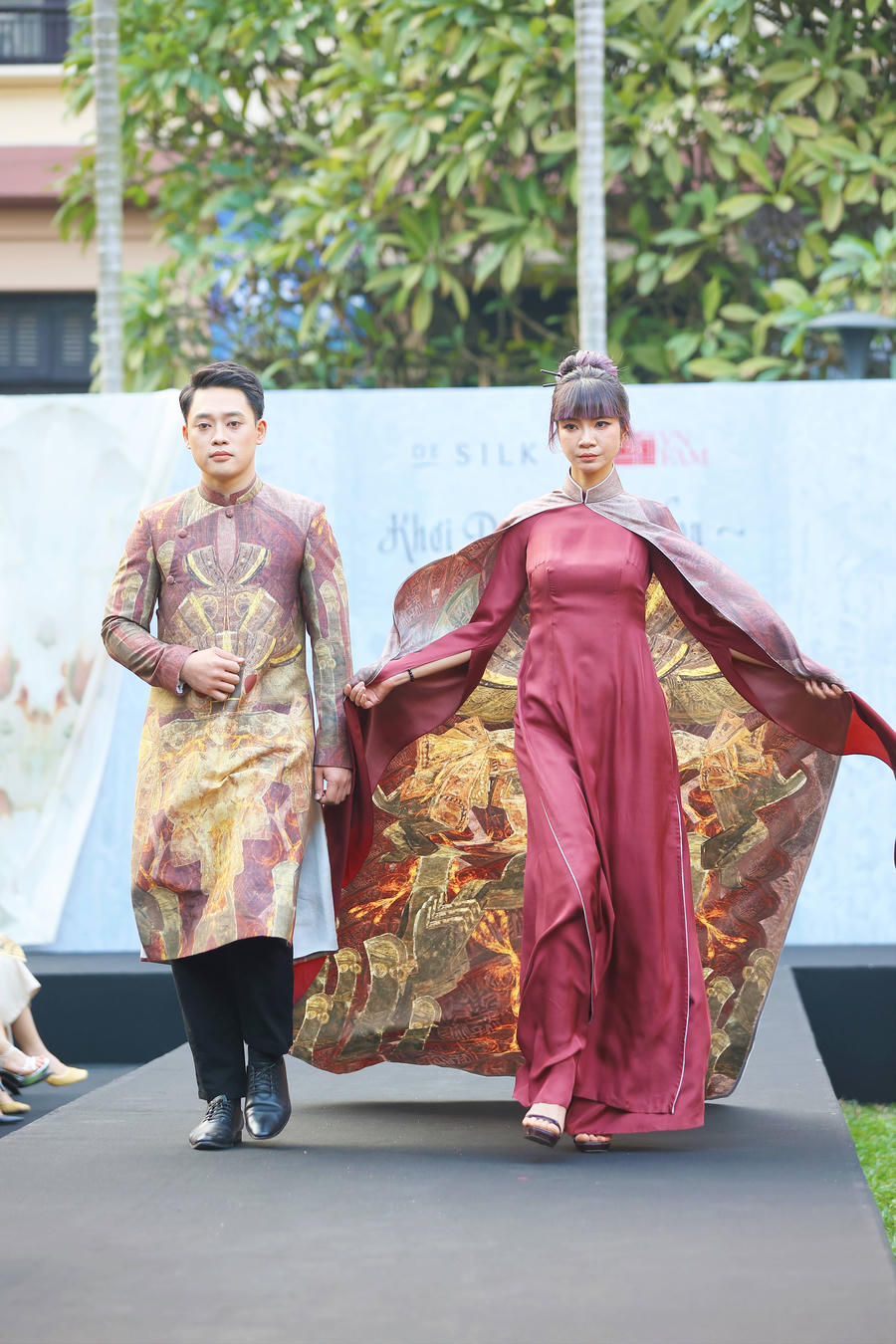 Bộ sưu tập “Khơi dậy tinh hoa - Nối dài di sản” của DeSilk tôn vinh những nét độc đáo của các bảo vật quốc gia, là sự giao thoa giữa nghệ thuật truyền thống và thiết kế đương đại. Mỗi thiết kế trên nền lụa mời gọi người xem cùng hòa mình vào dòng chảy văn hóa, để cảm nhận sâu sắc tinh thần nghệ thuật Việt Nam qua từng thời kỳ.