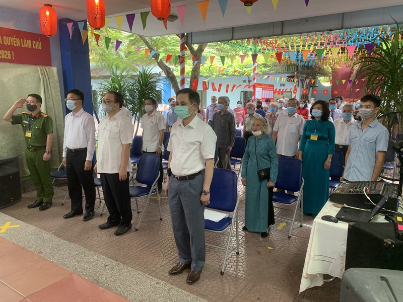 Sau nghi thức chào cờ và tuyên bố khai mạc, đúng 7h15, 2 đại diện cử tri và 2 đồng chí trong tổ bầu cử được mời chứng kiến, giám sát việc kiểm tra và niêm phong hòm phiếu.