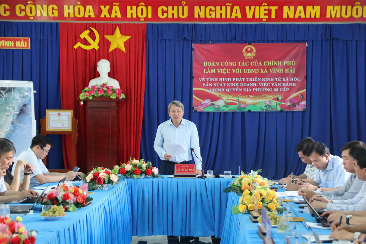 Sáng 17/10, Bộ trưởng Bộ Tư pháp Nguyễn Hải Ninh dẫn đầu Đoàn công tác của Chính phủ làm việc tại xã Vĩnh Hải, tỉnh Khánh Hòa – địa điểm dự kiến xây dựng Nhà máy điện hạt nhân Ninh Thuận 2. Chuyến công tác nhằm khảo sát thực tế tiến độ thu hồi, bồi thường, tái định cư, đồng thời nắm bắt tình hình phát triển kinh tế - xã hội và mô hình tổ chức chính quyền hai cấp sau khi điều chỉnh địa giới hành chính.