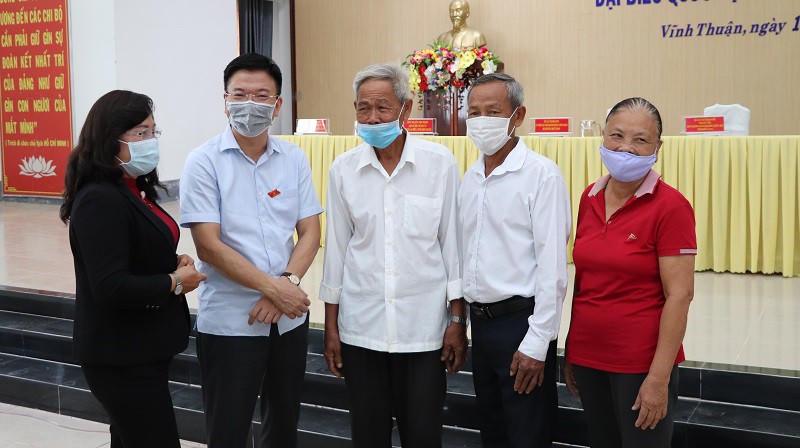 Cử tri Nguyễn Thị Hạnh bày tỏ: “Vĩnh Thuận là huyện vùng sâu, còn nhiều khó khăn về giao thông, thủy lợi. Do đó, tôi mong các cấp quan tâm đầu tư hệ thống thủy lợi phù hợp, hiệu quả để bà con nông dân thuận lợi hơn trong sản xuất, phát triển kinh tế; đầu tư xây dựng, mở rộng hạ tầng giao thông thông thoáng, bền, chắc để tạo điều kiện cho bà con đi lại, thông thương hàng hóa thuận tiện”.