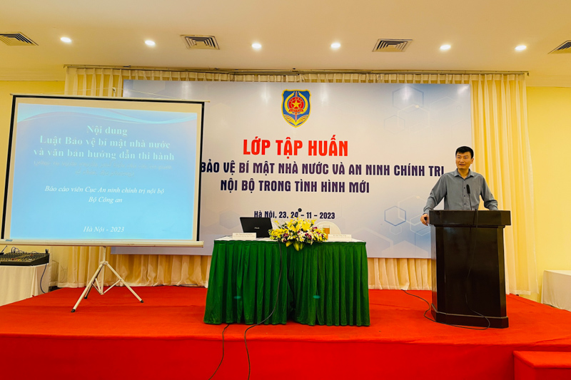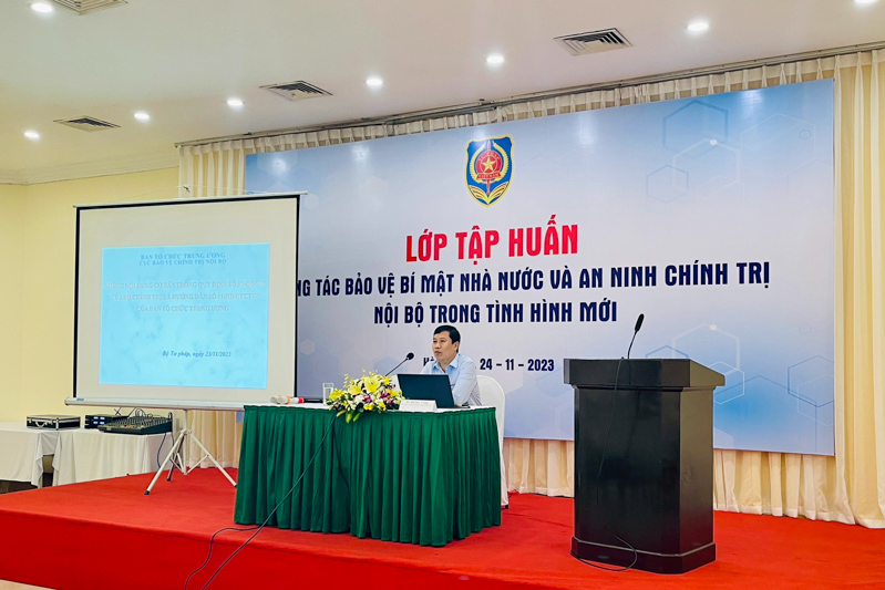 Được sự đồng ý của Lãnh đạo Bộ tại Quyết định số 2739/QĐ-BTP ngày 14/11/2023 về việc mở Lớp Tập huấn về công tác bảo vệ bí mật nhà nước và an ninh chính trị nội bộ trong tình hình mới, ngày 23/11, Bộ Tư pháp tổ chức khai giảng Lớp Tập huấn cho đối tượng công chức, viên chức các đơn vị thuộc Bộ Tư pháp chưa được tập huấn về công tác bảo vệ bí mật nhà nước và an ninh chính trị nội bộ trong năm 2023.