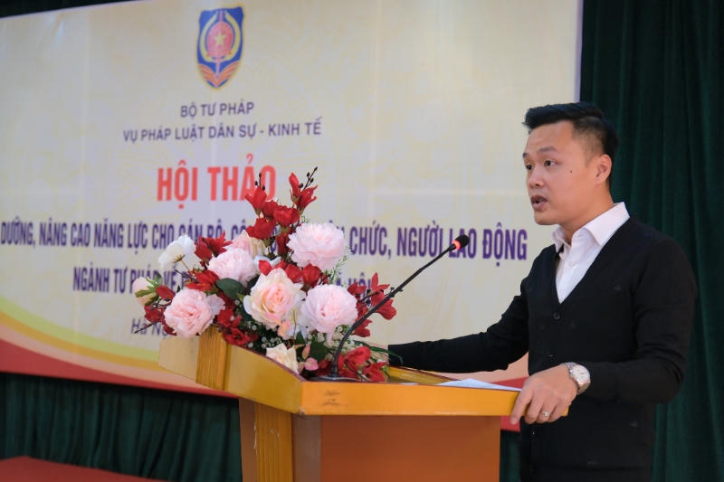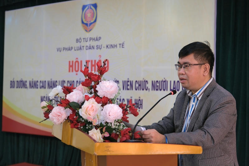Sáng 21/11, Bộ Tư pháp đã tổ chức Hội thảo Bồi dưỡng, nâng cao năng lực cho cán bộ, công chức, viên chức, người lao động ngành Tư pháp về phát triển công tác xã hội. Phó Vụ trưởng Vụ Pháp luật dân sự - kinh tế, Bộ Tư pháp Cao Đăng Vinh chủ trì Hội thảo.