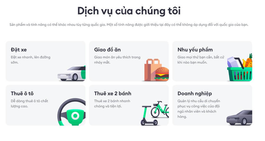 Giống như Grab, Bolt cung cấp đầy đủ các dịch vụ như gọi xe công nghệ, giao đồ ăn, giao hàng, cho thuê xe ô tô, thuê xe 2 bánh...