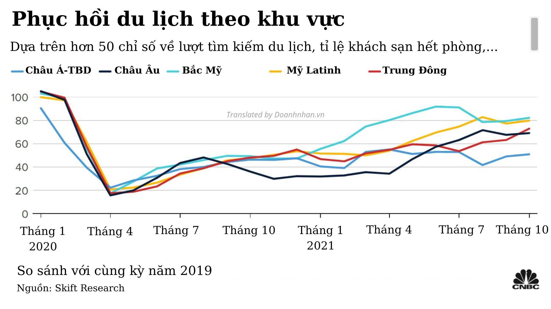 Theo phân tích của hãng nghiên cứu Skift, sự phục hồi du lịch giữa các khu vực không có sự đồng đều.