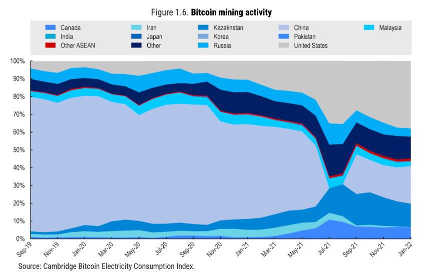 Dữ liệu từ Chỉ số tiêu thụ điện Bitcoin của Cambridge cho thấy, Malaysia chiếm 2,51% tổng lượng khai thác Bitcoin toàn cầu vào tháng 1 năm 2022, trong khi Thái Lan chiếm 0,96%.