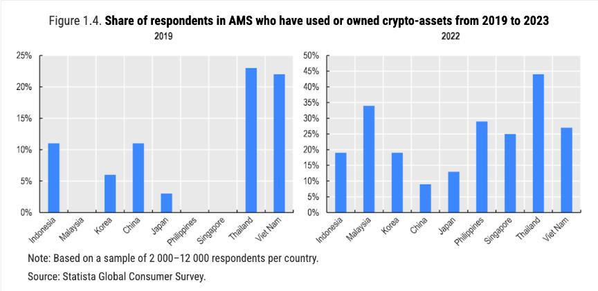 Các cuộc khảo sát do Statista thực hiện càng cho thấy, quyền sở hữu và sử dụng tài sản tiền điện tử đáng kể của người dân ở Malaysia, Việt Nam và Thái Lan.