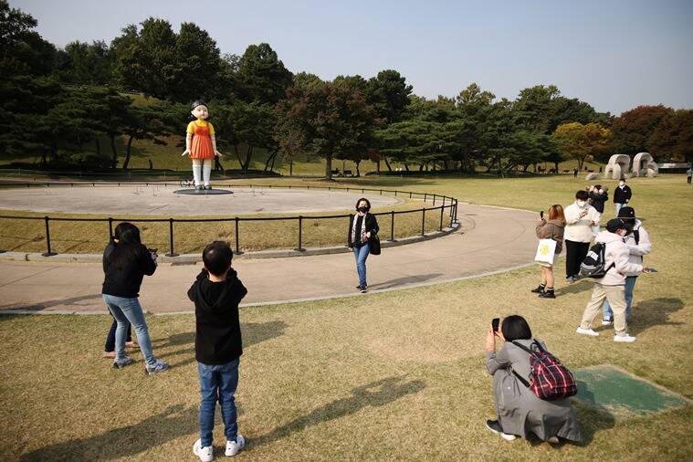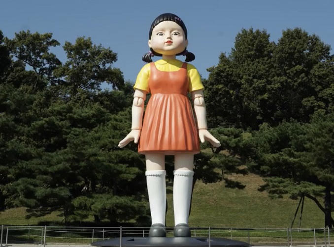 Chia sẻ với Reuters, đại diện của Netflix cho biết một con búp bê cao 4m mặc trang phục màu cam, vàng đã được dựng lên tại công viên Olympic Seoul. Mang đến cho người hâm mộ cơ hội trải nghiệm một chút cảm giác như đang tham gia bộ phim “Squid Game” - “Sinh tồn”.