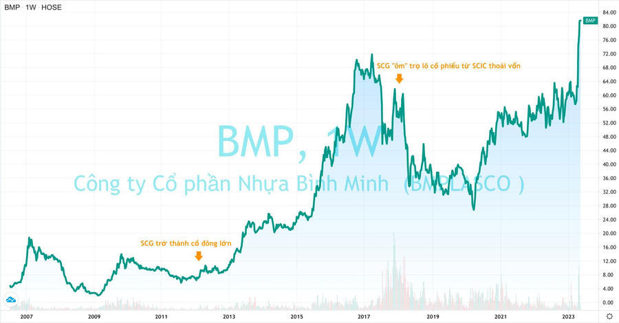 Cùng trong năm 2012, một “đại gia” Thái Lan khác là Tập đoàn SCG cũng bắt đầu thâu tóm Nhựa Bình Minh (BMP) - một trong những doanh nghiệp lớn nhất trong lĩnh vực sản xuất và phân phối ống nhựa của Việt Nam. Sau thương vụ thoái vốn của SCIC hồi tháng 3/2018, Nawaplastic đã nắm 49,9% cổ phần BMP và vẫn không ngừng mua gom để chi phối. Tập đoàn đến từ Thái Lan hiện đã nắm gần 55% cổ phần BMP tương ứng giá trị thị trường khoảng 150 triệu USD.