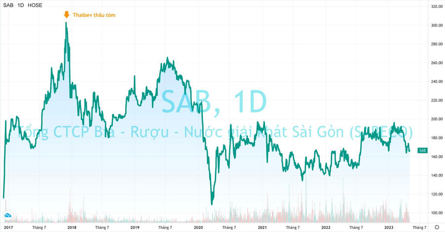 Thời điểm đó, Vietnam Beverage - công ty con của Thaibev đã chi đến gần 5 tỷ USD để mua trọn lô 343,66 triệu cổ phiếu SAB qua đó chính thức nắm quyền chi phối hãng bia lớn nhất Việt Nam. Sau thương vụ đình đám, SAB liên tục giảm sâu và vẫn đang chật vật tìm về ánh hào quang xưa. Giá trị số cổ phần SAB nắm giữ bởi Thaibev cũng “bốc hơi” gần một nửa, còn khoảng 2,7 tỷ USD .