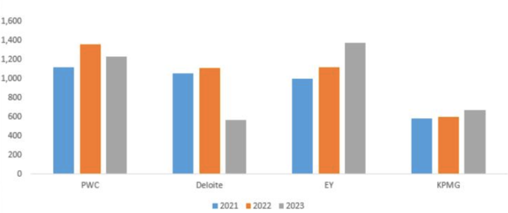 Trong năm tài chính 2023, tổng lợi nhuận sau thuế của Big4 kiểm toán bao gồm PWC, Deloitte, EY và KPMG tại Việt Nam đạt 184 tỷ đồng, giảm tới 45% so với năm tài chính 2022.