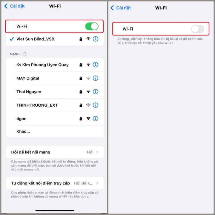 Ngắt kết nối Internet, chuyển iPhone sang chế độ máy bay và rút thẻ sim ra ngoài chính là cách phòng thủ khi Phone bị kẻ xấu hack. Bạn thực hiện như sau: Vào Cài đặt > Chọn Wifi > Ngắt kết nối Wifi.