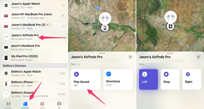 Nhấn vào nút Play Sound và để ý âm thanh từ tai nghe, sau đó xác định vị trí của chúng. Tuy nhiên, nếu tai nghe thất lạc khi đặt trong hộp sạc, nó sẽ không phát.