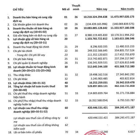 Lợi nhuận trước thuế ghi nhận tại 528,8 tỷ đồng, tăng 9,6% so với cùng kỳ năm ngoái. Mức tăng này chủ yếu nhờ công ty quản lý chi phí một cách hiệu quả và có khả năng tối ưu hóa lợi nhuận khi doanh thu chưa đạt kỳ vọng.