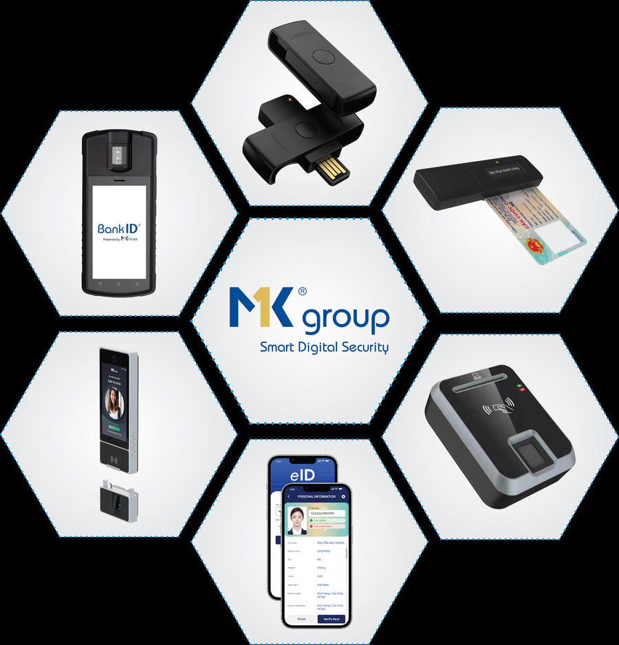 Tương tự với đó, MK Group là 1 trong các đơn vị tham gia sản xuất thẻ CCCD gắn chip, cũng đã sản xuất ra nhiều các thiết bị đầu đọc khác nhau để hỗ trợ các doanh nghiệp, đơn vị có thể xác thực thẻ theo nhiều cách khác nhau, từ đọc chip, đến đối sánh dữ liệu sinh trắc học gương mặt, vân tay,…. Giải pháp xác minh và định danh sử dụng thẻ CCCD gắn chip do MK Group nghiên cứu và phát triển trên nền tảng ứng dụng xác thực thẻ CCCD gắn chip của Bộ Công An.