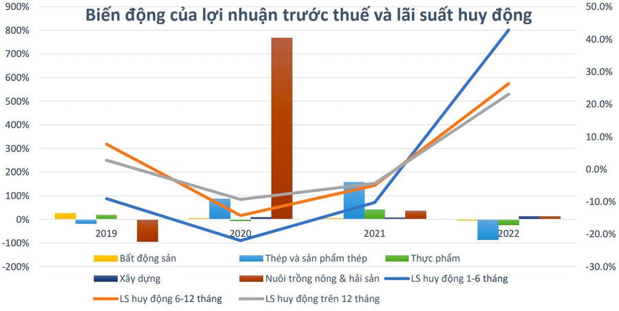 Trong đó, MAS dùng lợi nhuận trước thuế 2022 làm cơ sở ước tính. Với kịch bản trung tính nhất ở mức giảm lãi suất cho vay xuống 0,5%, sẽ giúp cho ngành Thép có phần cải thiện tăng lợi nhuận trước thuế lớn nhất ở mức 4,2%, và nhóm thực phẩm có mức biến động thấp nhất với 1,1%.