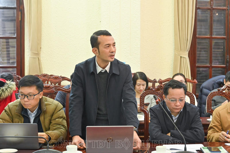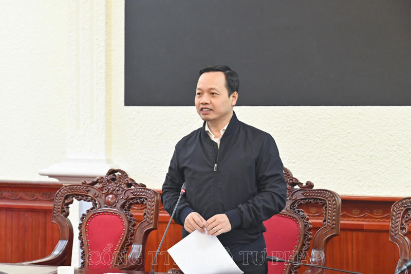 Báo cáo tại cuộc họp, đồng chí Trần Anh Đức, Phó Vụ trưởng phụ trách Vụ Các vấn đề chung về xây dựng pháp luật cho biết, để thực hiện việc xây dựng dự thảo Quyết định của Thủ tướng Chính phủ ban hành danh mục, phân công các cơ quan chủ trì soạn thảo các văn bản quy định chi tiết Luật, Nghị quyết được Quốc hội thông qua tại Kỳ họp bất thường lần thứ 5, Bộ Tư pháp đã có Công văn đề nghị các Bộ, cơ quan ngang Bộ rà soát nội dung và đề xuất văn bản quy định chi tiết các nội dung được giao để gửi Bộ Tư pháp tổng hợp, lập Danh mục, trình Thủ tướng Chính phủ xem xét, quyết định.