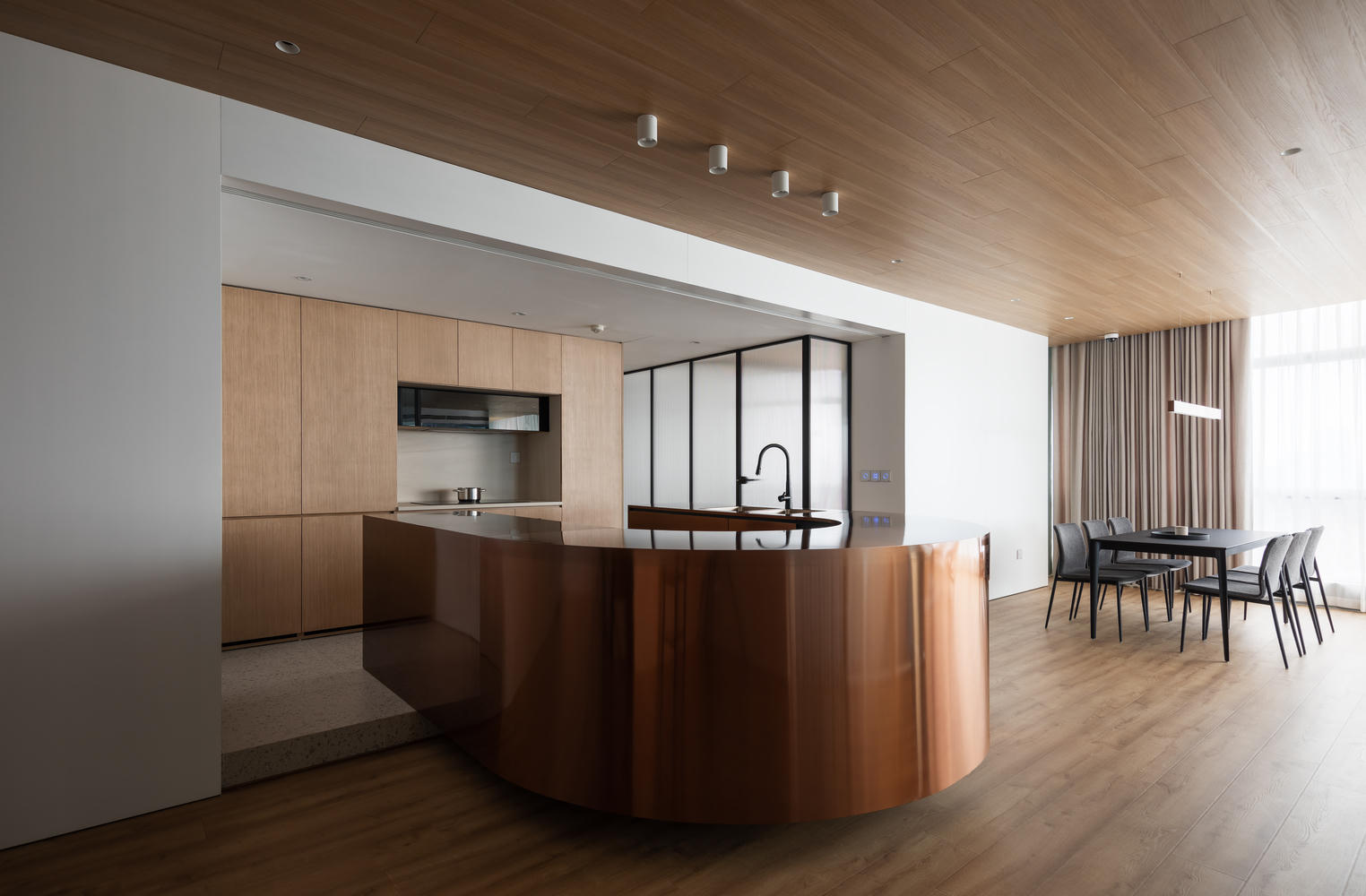 Chủ nhân của căn hộ này là một người yêu âm nhạc và anh ấy muốn có một không gian để sống nhưng cũng cần một phòng giải trí để thưởng thức âm thanh và rượu vang.