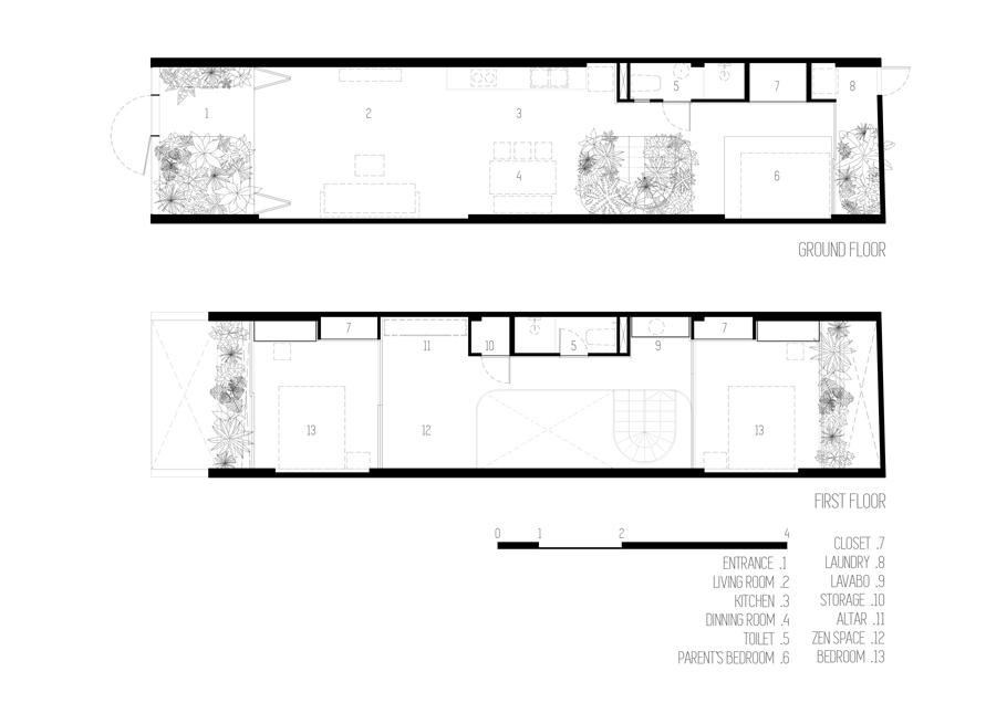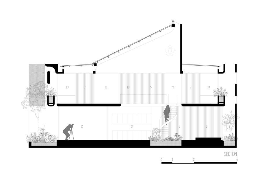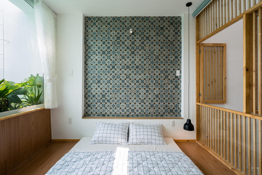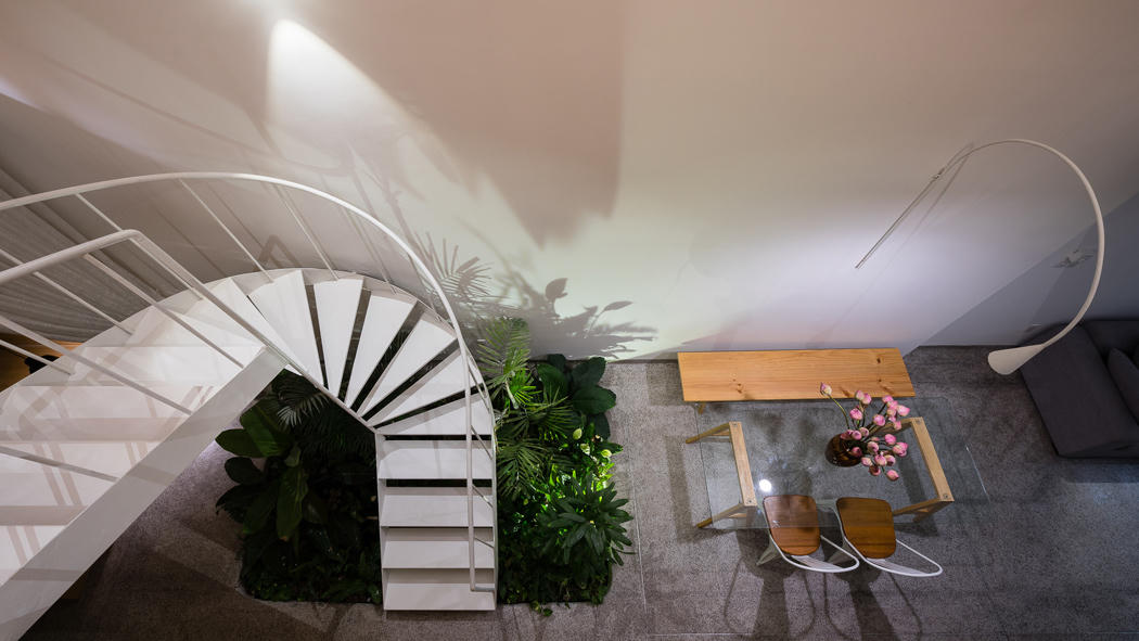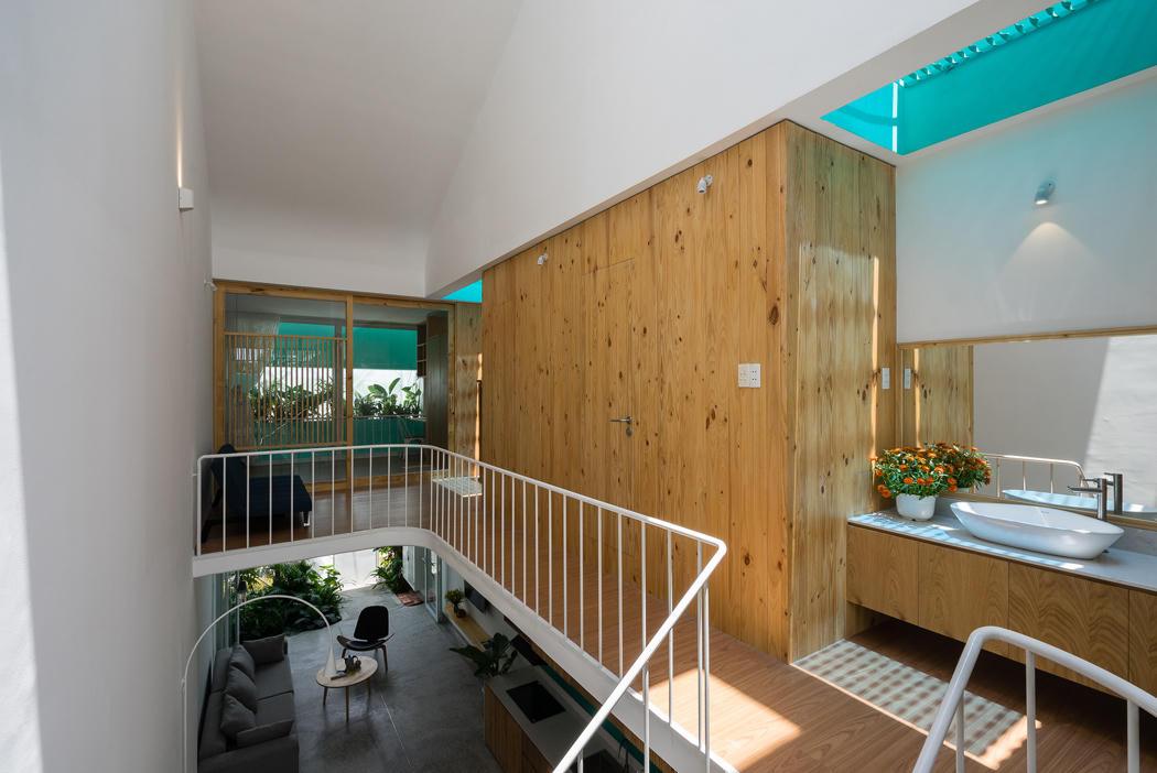 Hệ thống vách ngăn được thiết kế có thể di chuyển linh hoạt, mọi giới hạn cố hữu bị loại bỏ. Khu vườn đan xen xuất hiện và biến mất, nhà vệ sinh ẩn trong tủ gỗ... tạo cảm giác rộng rãi.