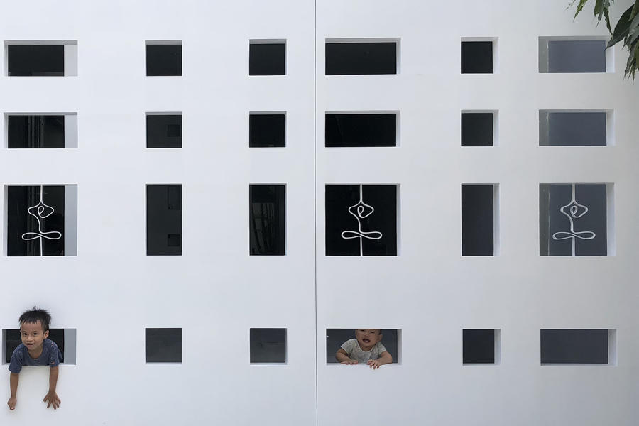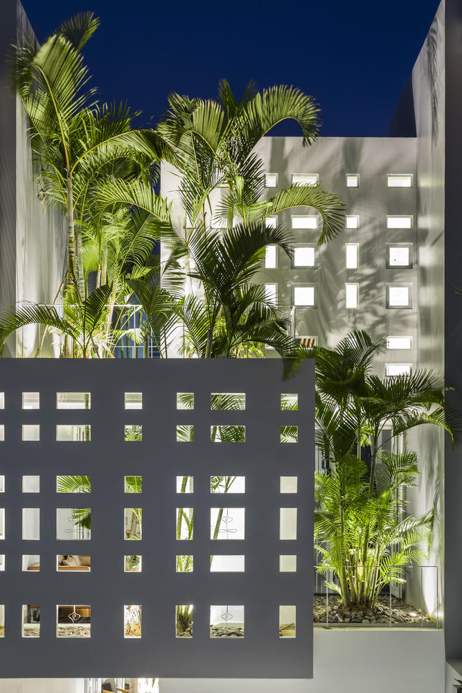 Ngôi nhà được thiết kế ba tầng với ba khối xếp chồng và so le nhau. Điều này giúp gió và ánh sáng có thể luồn lách vào từng góc nhỏ.