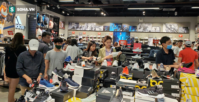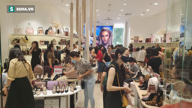 Hồng Xuân, chủ một gian hàng giày dép, túi xách hàng hiệu tại trung tâm thương mại trên phố Cầu Giấy cho hay, ngoài mua trực tiếp, cửa hàng triển khai giảm giá online nên không có tình trạng xô đẩy mua hàng như trước đây.