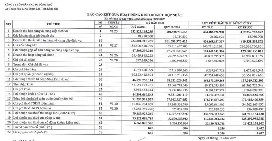 Về bức tranh tài chính, theo báo cáo tài chính hợp nhất quý II/2025, công ty ghi nhận doanh thu thuần đạt 201,5 tỷ đồng, giảm 13% so với cùng kỳ năm ngoái.