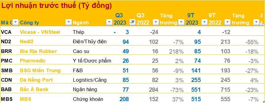 CTCP Cao su Bà Rịa (BRR) ghi nhận lãi trước thuế quý III 49 tỷ đồng, tăng mạnh 218%. Nguyên nhân do doanh thu tài chính tăng mạnh nhờ cổ tức lợi nhuận được chia kỳ này nhận được hơn 39 tỷ trong khi cùng kỳ chỉ 15 triệu đồng. Lũy kế 9 tháng, LNTT BRR đạt 85 tỷ, giảm 18%.
