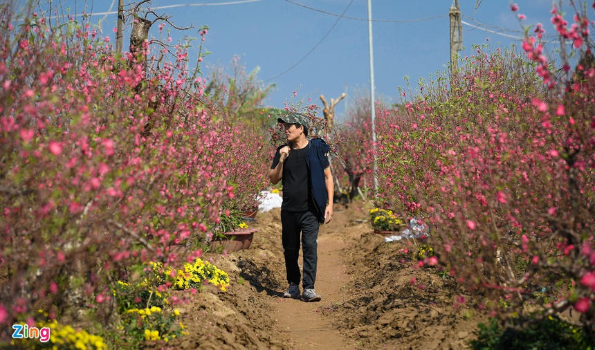 Sau nửa tiếng dạo vườn đào thì anh Lý Hoài Ngọc (Thuỵ Khuê, Ba Đình) chọn được một cành trị giá 400.000 đồng. “Năm nay hoa đào nở rất đẹp, 29 tháng Chạp mà vườn cũng còn nhiều hoa hơn so với năm ngoái, bằng giờ năm ngoái là thưa thớt hoa rồi”, anh Ngọc chia sẻ.