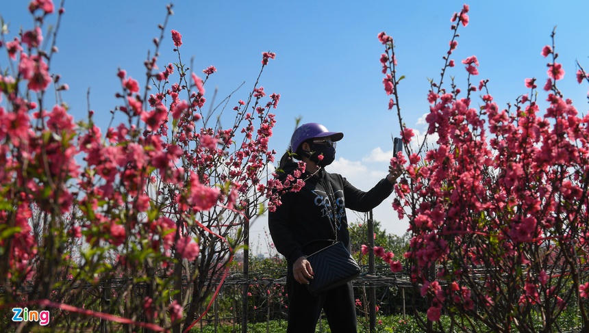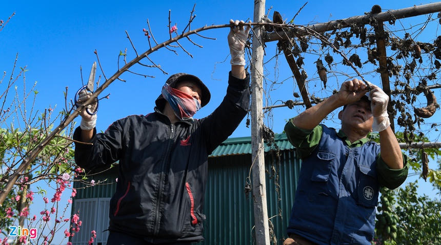 Ông Hạnh, người chuyên trồng đào bán cành, cho biết lượng khách mua năm nay giảm khoảng 20% so với năm ngoái. Vườn nhà ông trồng 500 cành, đã bán khoảng 400 cành, hầu hết khách đã chọn mua sớm để chọn cành đẹp. Còn lại những cành ở vườn, vợ ông cắt cành dăm để bán cho khách mua cắm bình nhỏ, bàn thờ.