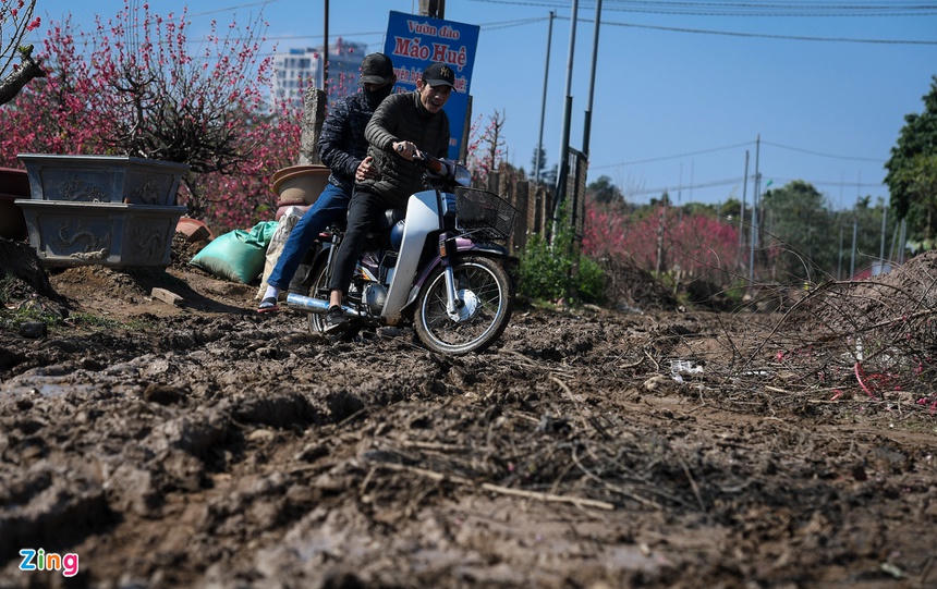 Sau cơn mưa ngày 28 Tết, đường ở đây lầy lội khiến việc di chuyển rất khó khăn.
