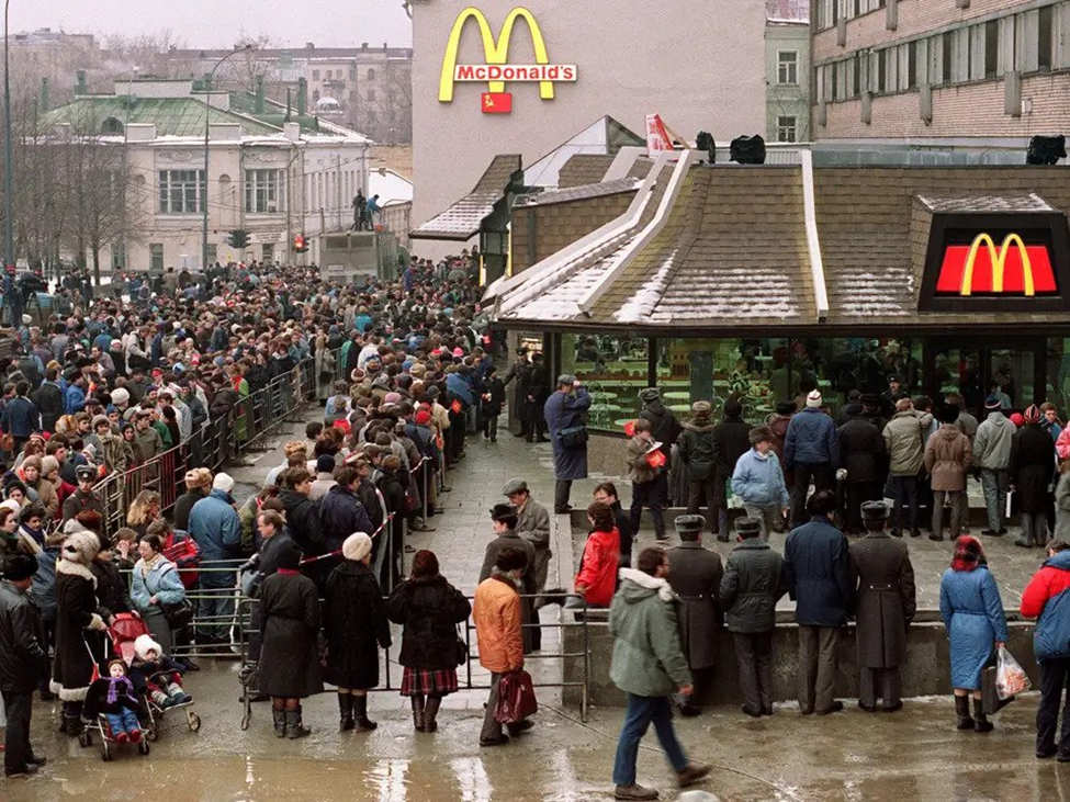 McDonald's mở cửa hàng đầu tiên ở Nga - khi đó còn là một phần của Liên Xô cũ - tại Quảng trường Pushkin ở Matxcova vào ngày 31 tháng 1 năm 1990. Bất chấp thời tiết khắc nghiệt, hàng trăm người đã xếp hàng để thử đồ ăn của hãng.