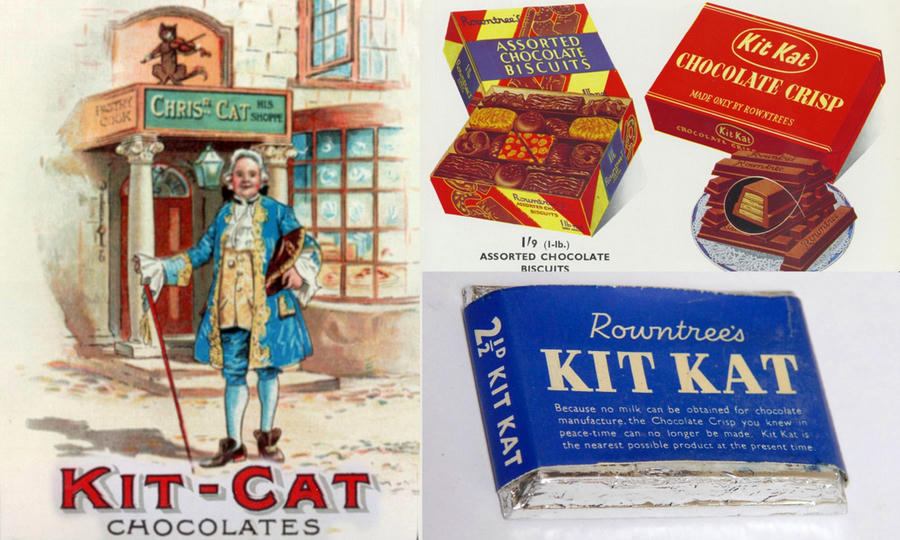 Kit Kat lần đầu xuất hiện trên thị trường với tên gọi Rowntree's Chocolate Crisp vào năm 1935 tại Anh. Cái tên "Kit Kat" được lấy cảm hứng từ tên gọi của "Câu lạc bộ Kit Cat" - một câu lạc bộ xã hội tại Anh lúc bấy giờ. Tên gọi này chính thức được đưa vào sử dụng vào năm 1937.
