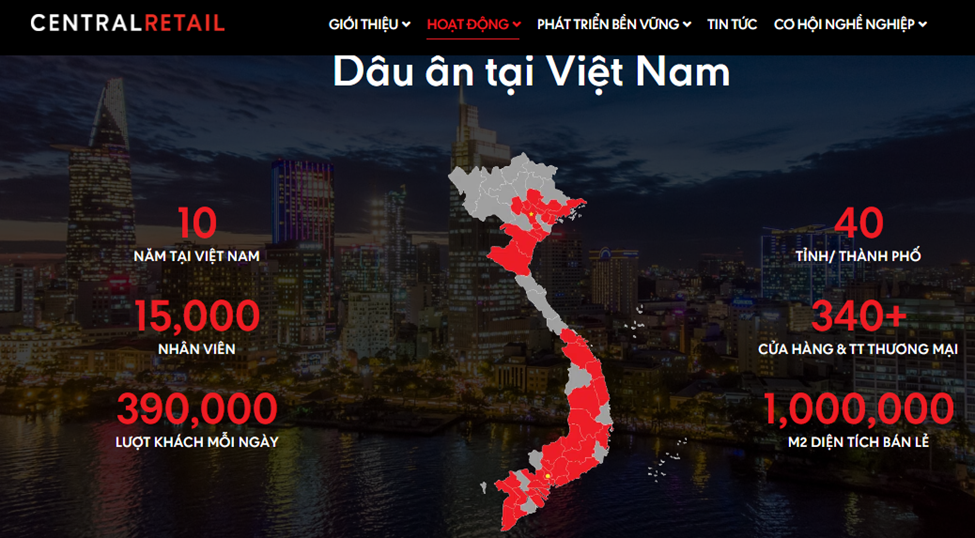 "Central Retail vào Việt Nam năm 2012 với tư cách là một...nhà bán lẻ thời trang chỉ với một vài chi nhánh. Giờ đây, Tập đoàn đã trở thành nhà bán lẻ quốc tế lớn nhất tại Việt Nam, đại siêu thị số 1 và trung tâm mua sắm phong cách sống số 2."
