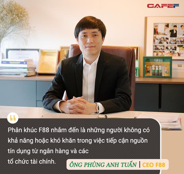 Phân khúc F88 nhắm đến là những người không có khả năng hoặc khó khăn trong việc tiếp cận nguồn tín dụng từ ngân hàng và các tổ chức tài chính. Họ vay khoản vay nhỏ, nhu cầu cần vay gấp và nhanh. Họ không có kế hoạch vay tiền trước như mai phải đóng tiền nhà, tối nay phải có khoản tiền đấy, không ai cho họ vay cả, việc vay bạn bè gia đình còn là thể diện nữa. Hai là khoản vay của họ rất nhỏ, trung bình các khoản vay dao động trong khoảng 10-15 triệu/món. Vậy ai cho các khách hàng này vay? Tổ chức tài chính không cho vay ngay và luôn các khoản vay nhỏ, bởi vì chi phí trên một khách hàng là lớn.