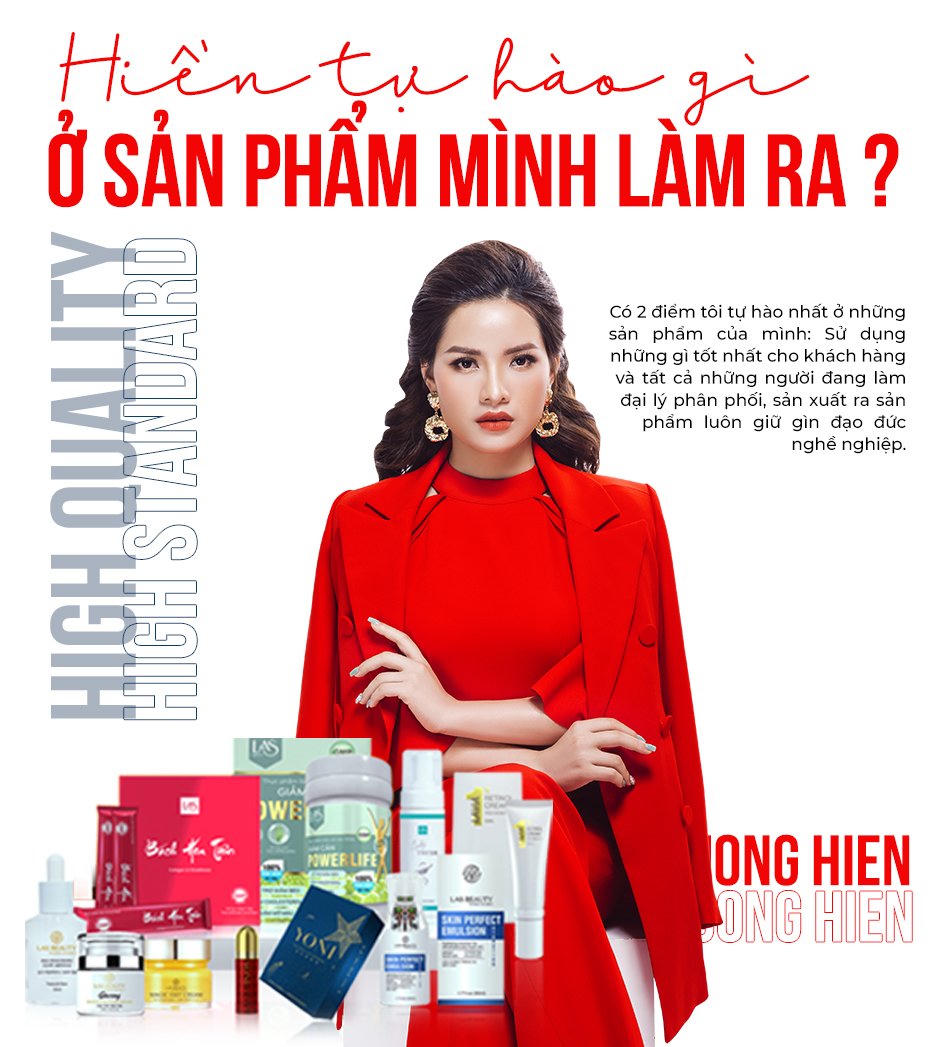 Với Trương Hiền – CEO công ty cổ phần THE HIGH, chuyên sản xuất cung cấp các sản phẩm chăm sóc sức khỏe cho các chị em phụ nữ với hai nhãn hàng LAS BEAUTY và The High Korea, một phụ nữ hạnh phúc, tự chủ, toả sáng đơn giản là được xã hội, gia đình, bạn bè, và chính mình tôn trọng cuộc đời mình. Cái sự tôn trọng đó, được thể hiện qua việc: mỗi ngày, mỗi người phụ nữ được làm công viêc họ yêu thích một cách chủ động, rồi có thu nhập tốt, có giá trị, có tiếng nói, có nhiều thời gian cho những mối quan hệ xung quanh và xa hơn là có thể giúp đỡ nhiều người, bằng chút sức nhỏ bé của mình.