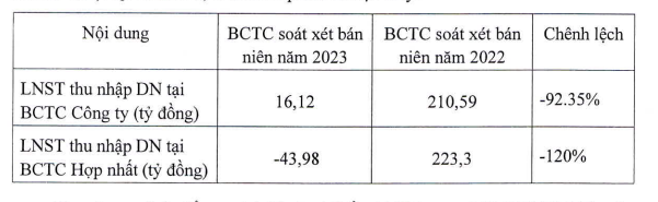 Cụ thể, ngày 11/8, HOSE nhận được công bố Báo cáo tài chính bán niên của Gilimex. Trong đó, lợi nhuận sau thuế trong nửa đầu năm 2023 ghi nhận khoản lỗ 43,98 tỷ đồng, trong khi cùng kỳ lãi 223,3 tỷ đồng, tương đương với mức giảm 120%.