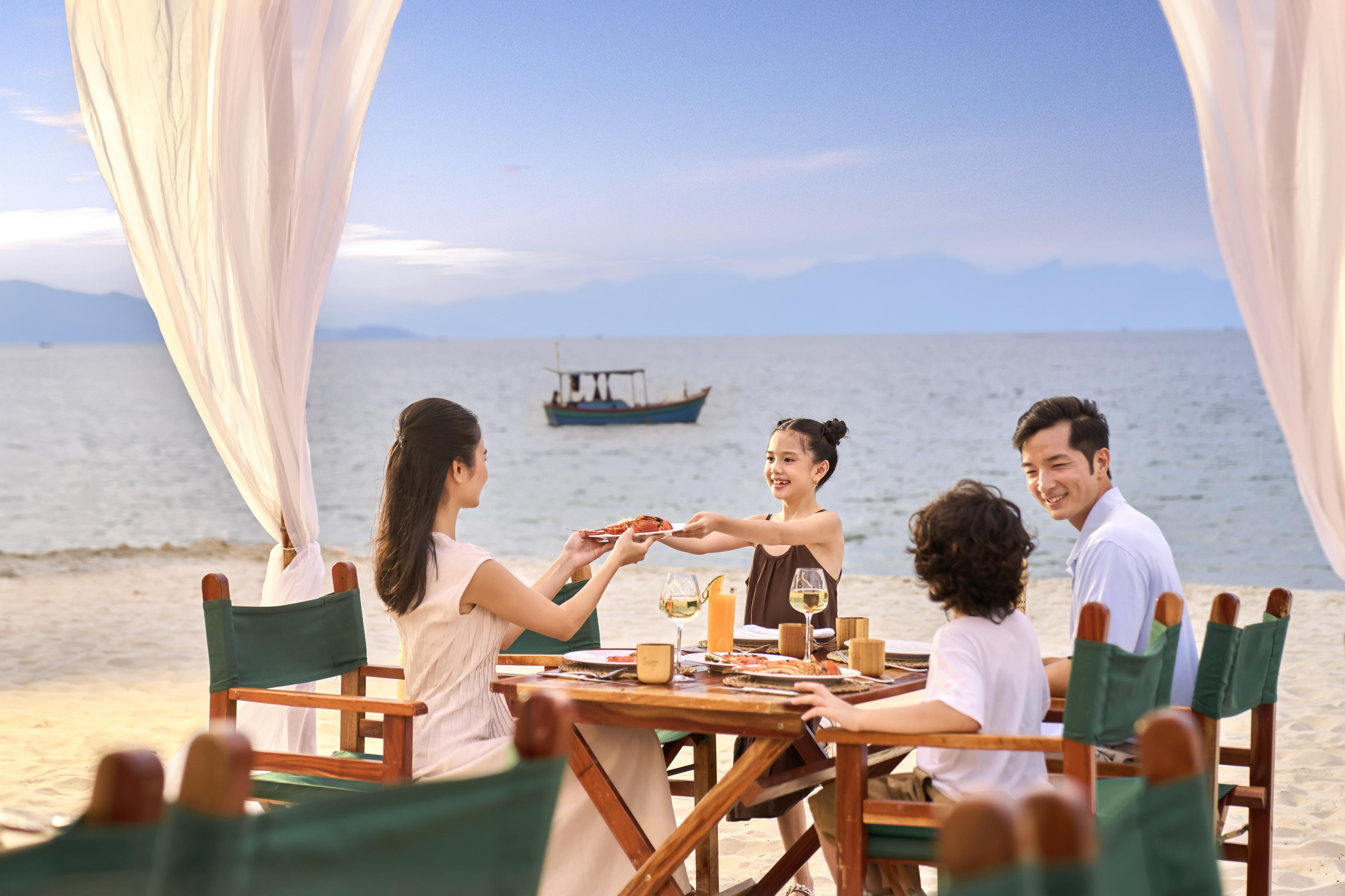Dù là bữa tối riêng tư tại biệt thự với thực đơn món Việt chọn lọc, hay tiệc BBQ hải sản sôi động bên bờ biển trong tiếng nhạc sống, mỗi khoảnh khắc đều được chăm chút để gắn kết tình thân trọn vẹn.