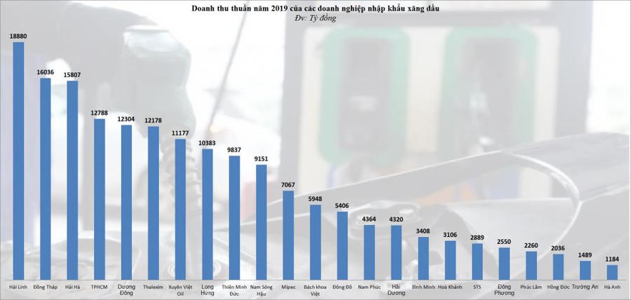 Khảo sát của Nhadautu.vn cho thấy, 23/38 doanh nghiệp đầu mối xăng dầu có doanh thu năm 2019 trên 1.000 tỷ, trong đó 8 doanh nghiệp có doanh thu thuần trên 10.000 tỷ.