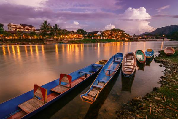 Cách biên giới Việt Nam không xa, Vang Vieng là một thị trấn xinh xắn nằm lọt thỏm giữa rừng núi mênh mông xanh ngắt. Dù được biết tới là một vùng quê hẻo lánh song hàng năm, Vang Vieng thu hút một lượng du khách khổng lồ bởi vẻ đẹp yên bình và khí hậu trong lành, mát mẻ. Không có những resort sang trọng hay những công trình kiến trúc hiện đại, Vang Vieng ẩn chứa một nét đẹp hoang sơ, thuần khiết với địa thế lý tưởng: lưng tựa núi, mặt hướng về phía dòng Nam Song thanh bình.