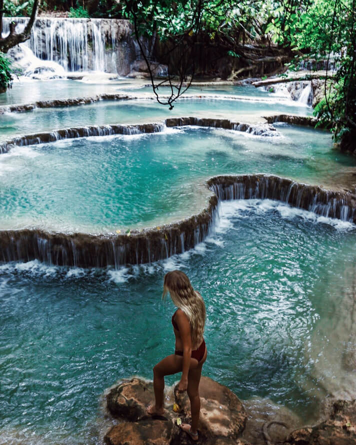 Được ví như chốn thiên đường hạ giới với khung cảnh thiên nhiên diệu kì, quần thể thác Kuang Si là điểm đến tuyệt vời dành cho du khách. Tới đây, du khách sẽ có cơ hội được khám phá khu rừng rậm nguyên sinh hoang sơ, kì thú và thoả sức đắm mình trong các hồ nước trong xanh, mát lạnh. Những tầng thác đổ xuống từ trên cao, tung bọt trắng xoá, cùng với chim muông trong rừng tạo thành một bản hợp xướng khi thì thánh thót trong trẻo, khi lại trầm hùng, réo rắt.